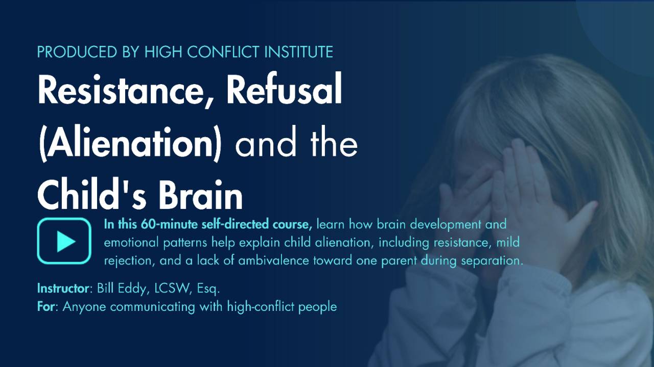 This 1-hour on demand course looks at research that helps explain what may be going on in a child’s brain as a child becomes resistant to seeing a parent in separation and divorce.
